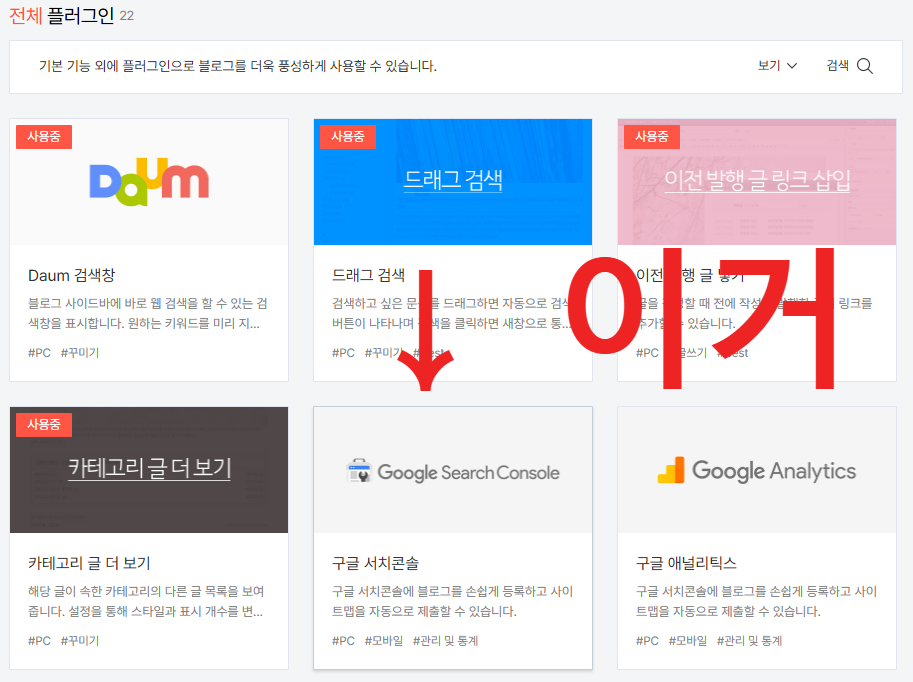 3. Google Serch Console 플러그인 검색하여 찾기